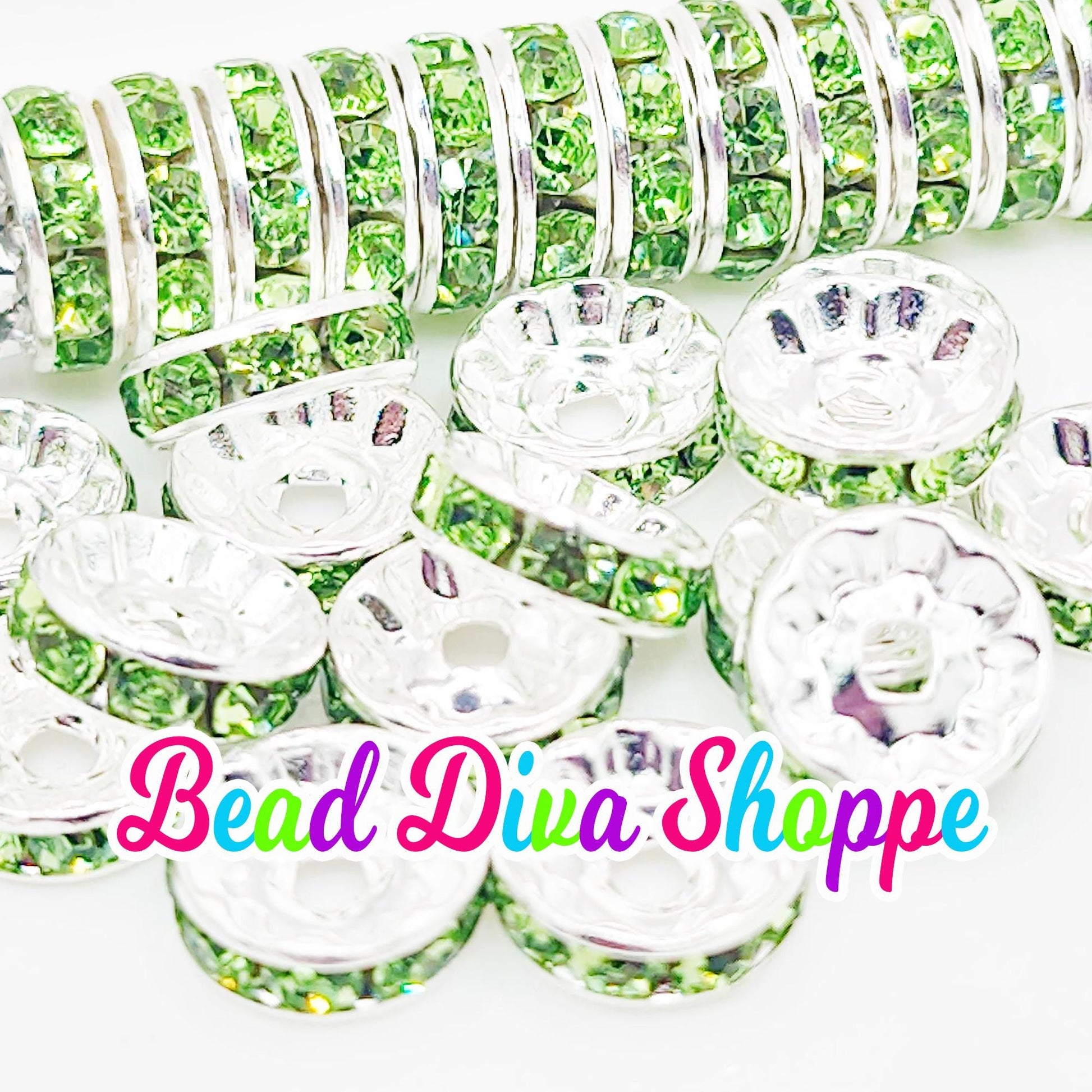 10mm - SET of 50 - LIME GREEN - Rhinestone Rondelle Crystal Round Loose Spacer Beads
