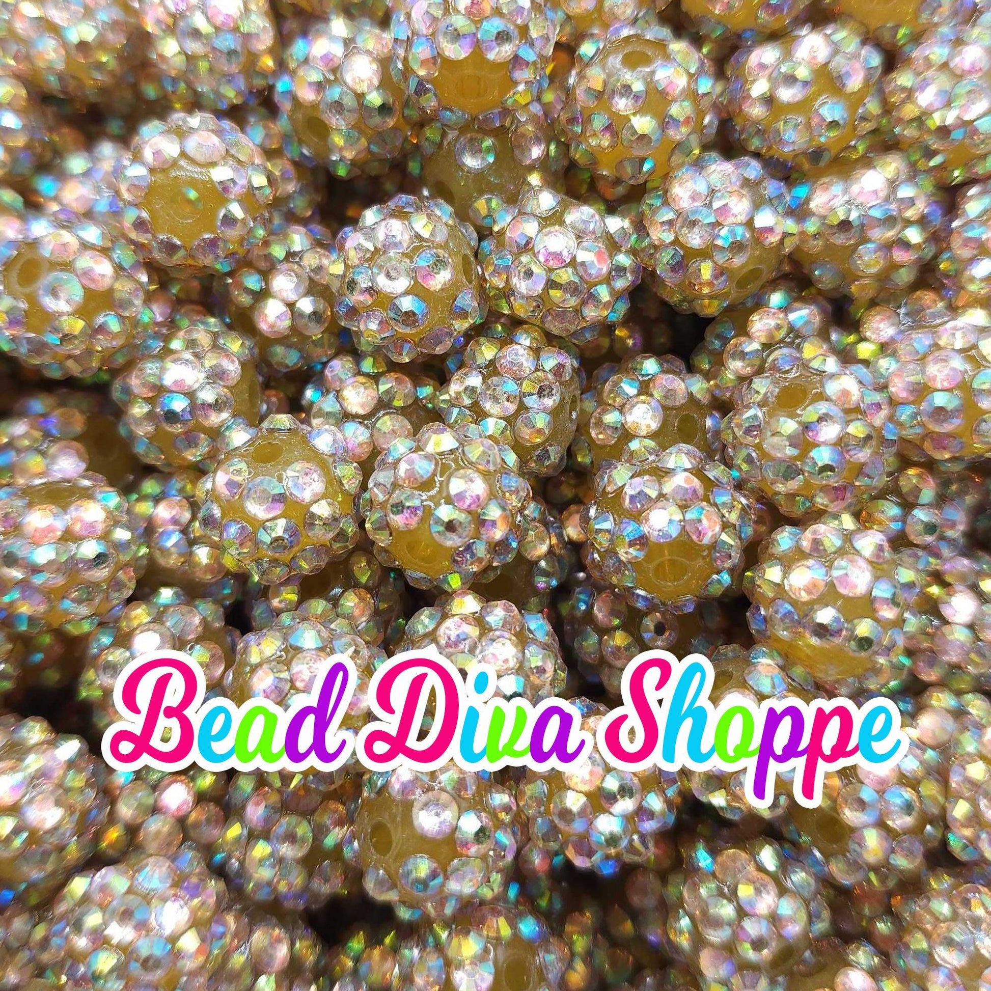 12mm - Set of 10 - GOLD RHINESTONE Beads - Bubblegum - Rhinestone - Acrylic Beads for DIY and Jewelry Making Supplies