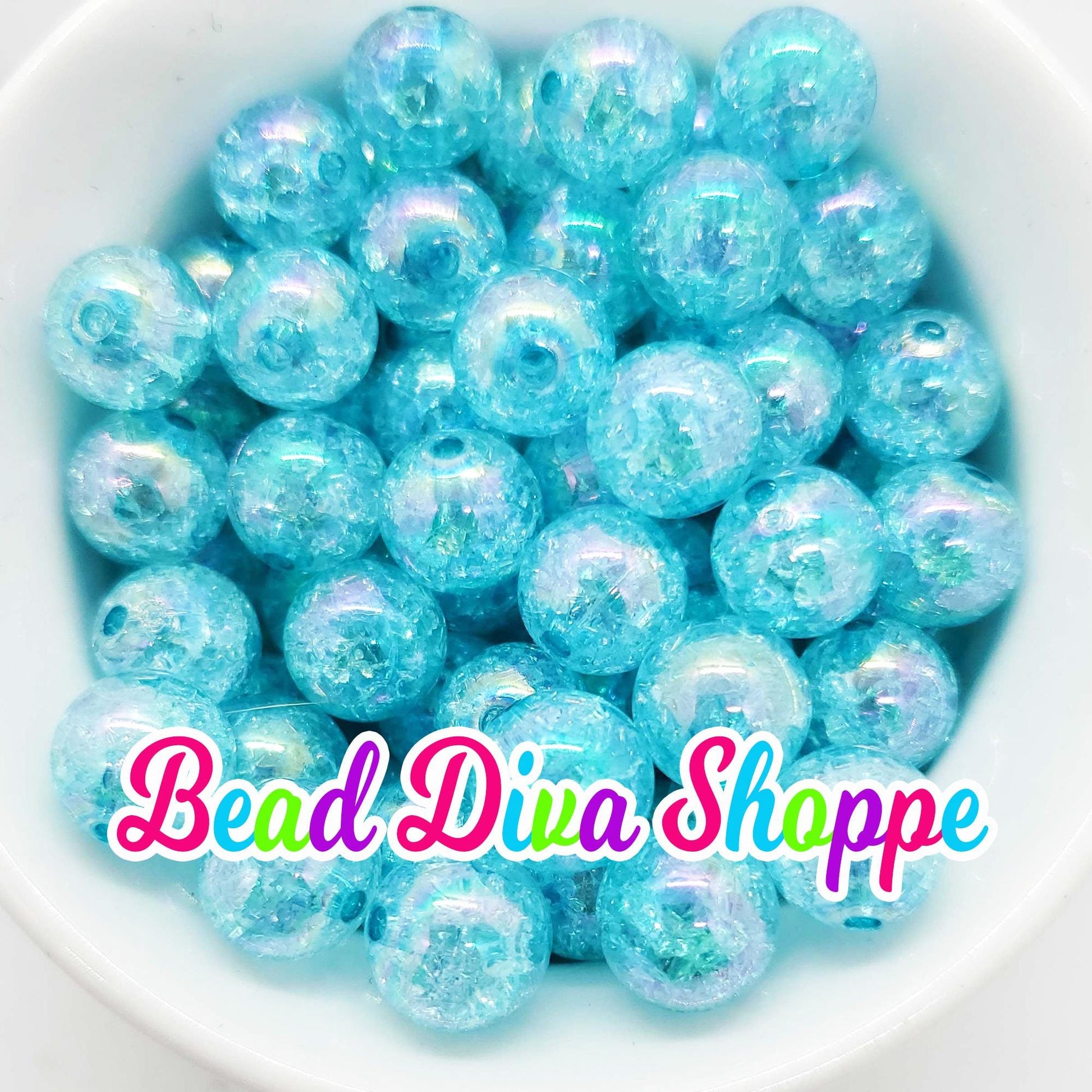 12mm - Set of 10 - TURQUOISE BLUE - CRACKLE Beads - Bubblegum - Acrylic Beads for Diy and Jewelry Making Supplies