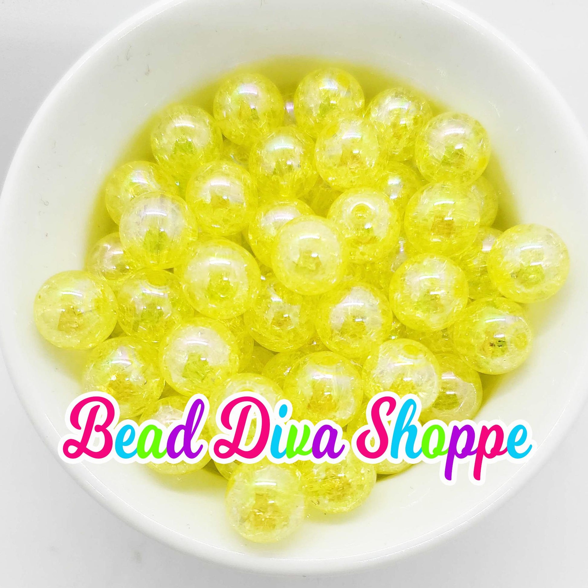 12mm - Set of 10 - YELLOW - CRACKLE Beads - Bubblegum - Acrylic Beads for Diy and Jewelry Making Supplies
