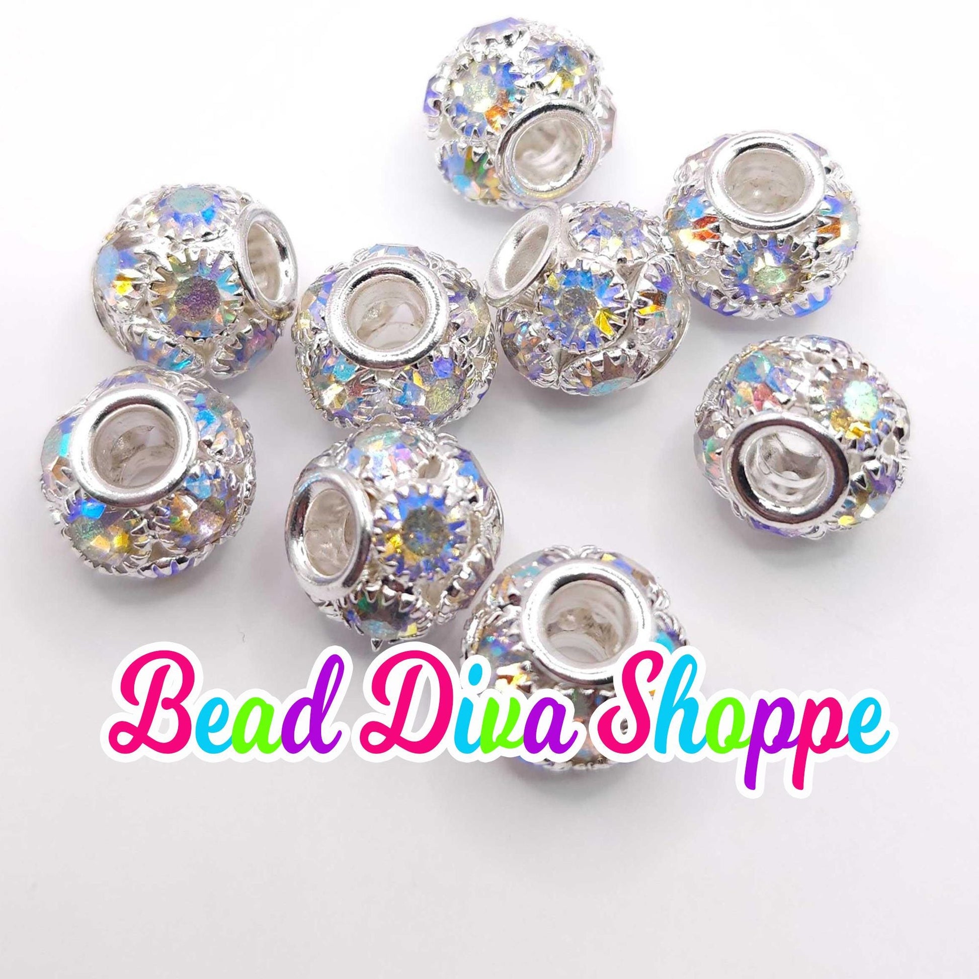 12mm - SET of 5 - SILVER AB - Big Holes Crystal Rhinestone Hollow Spacer Rondelles Bead for Diy and Jewelry Making Supplies