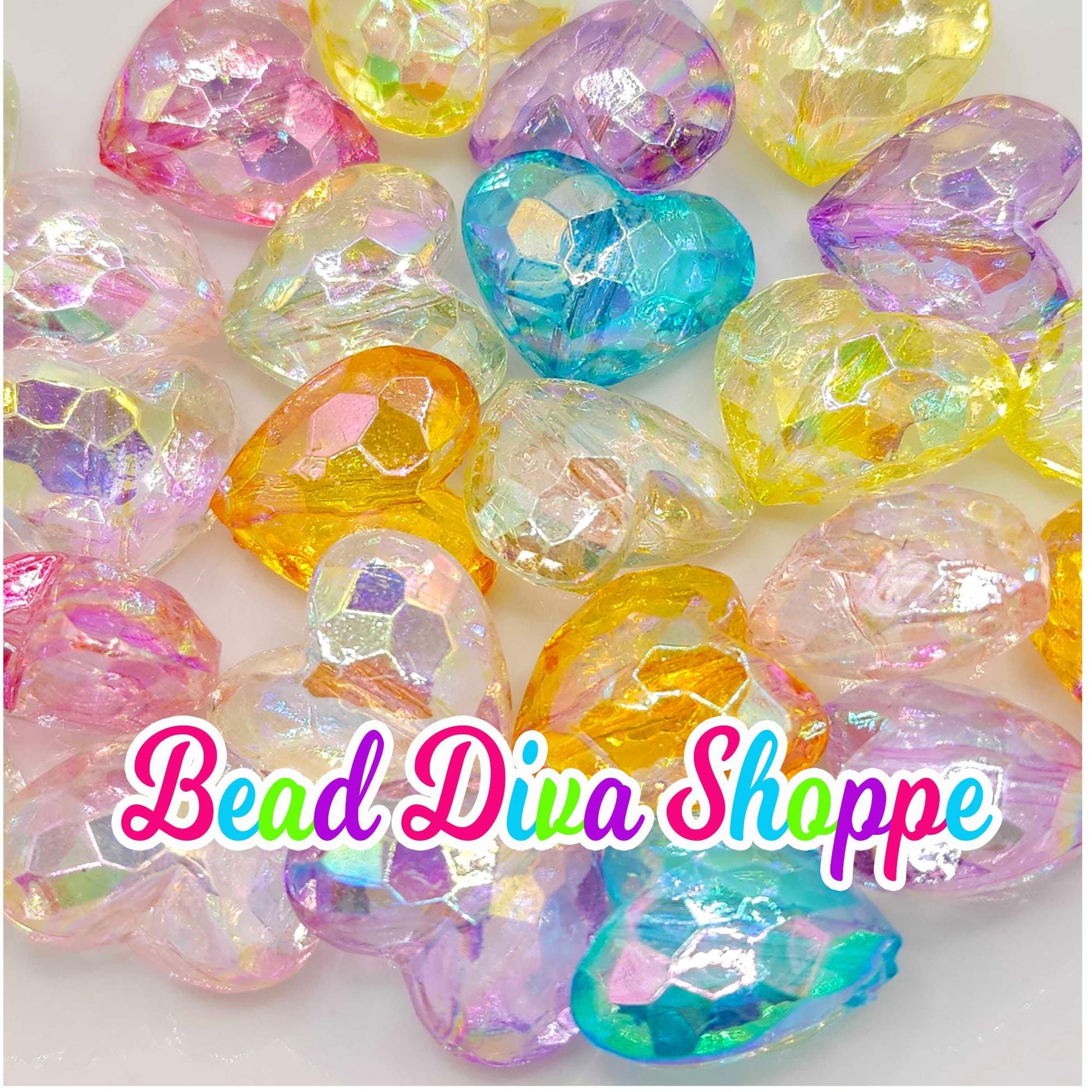 19mm X 16mm - Set of 10 - HEART AB MIX - Faceted Heart Charm Spacer Beads - Diy - Jewelry - Spacers - Bracelets