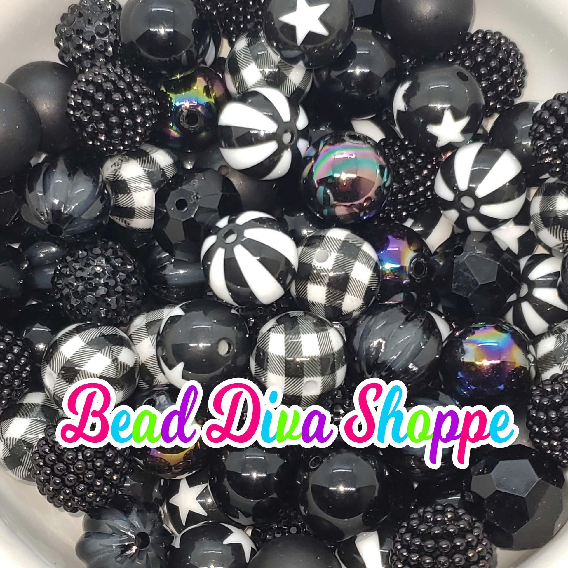 Set of 24 - 20mm - BLACK / WHITE Mix - Bead Lot - Bead Mix - Bubblegum - Round Acrylic Beads for DIY and Jewelry Making Supplies