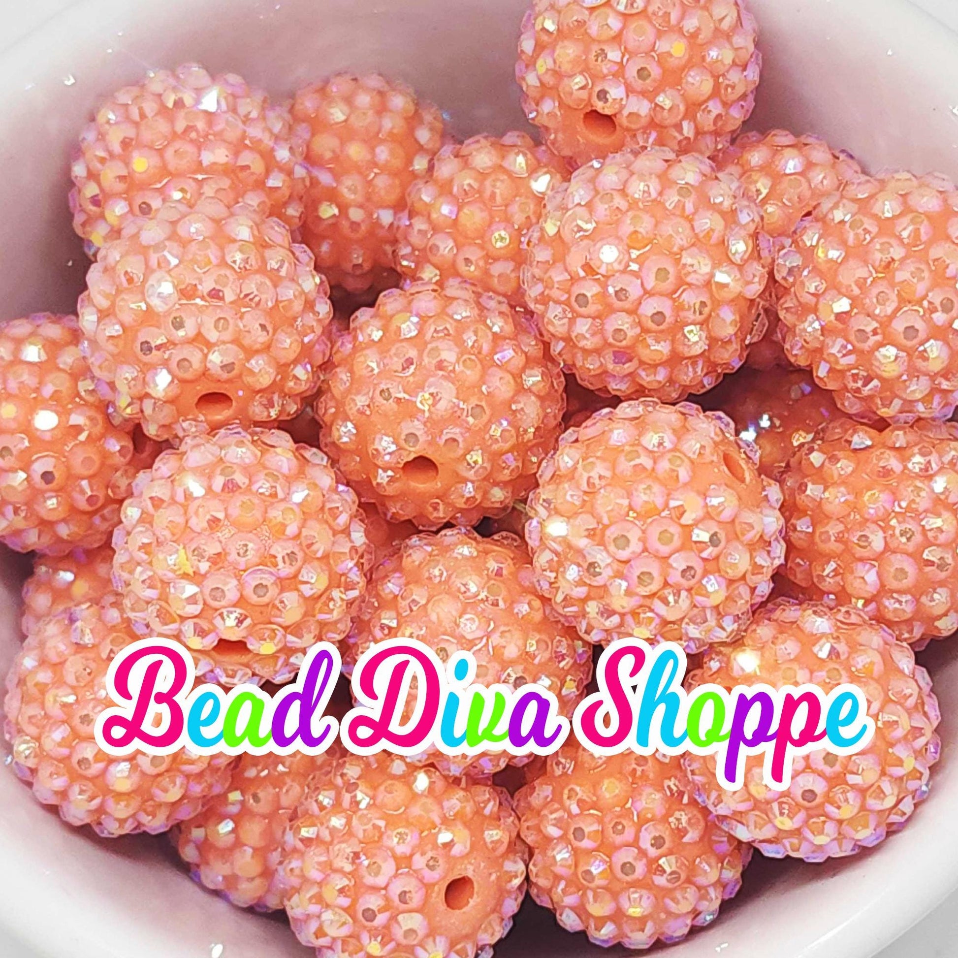 20mm - BRIGHT CORAL AB - Rhinestone Beads- Bubblegum - Chunky - Round Acrylic Beads for Diy and Jewelry Making Supplies