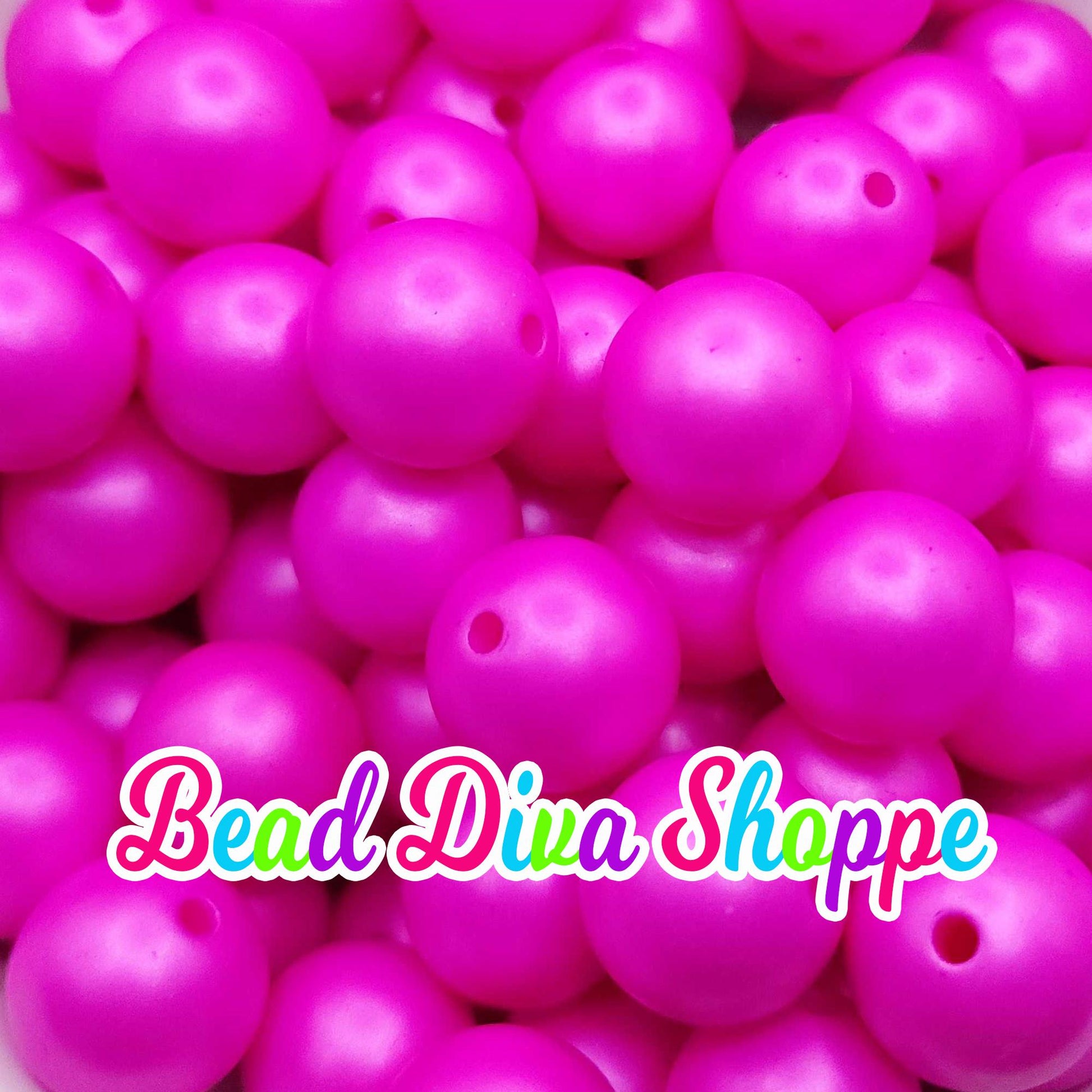 20mm - BRIGHT PINK MATTE Pearl - Chunky Bubblegum Beads - Round Acrylic Beads for Diy and Jewelry Making Supplies