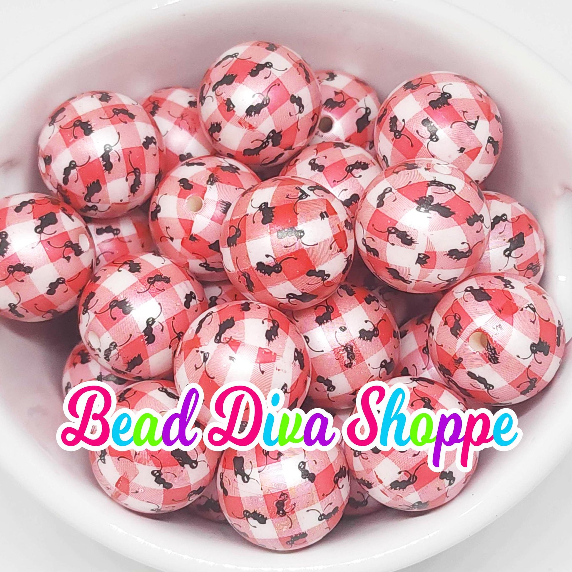 20mm - CUTE PICNIC ANTS Print Beads - Bubblegum - Round Acrylic Beads for Diy and Jewelry Making Supplies