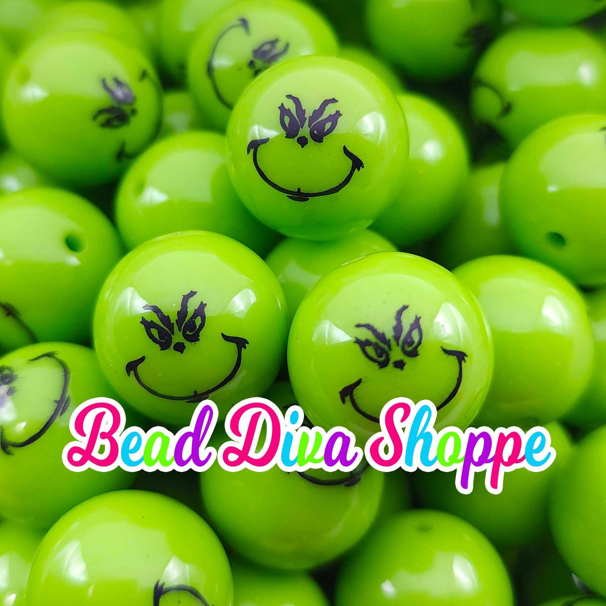 20mm - GRINCHY - CHRISTMAS - Mean One - Acrylic Beads- Bubblegum - Round Acrylic Beads for Diy and Jewelry Making Supplies