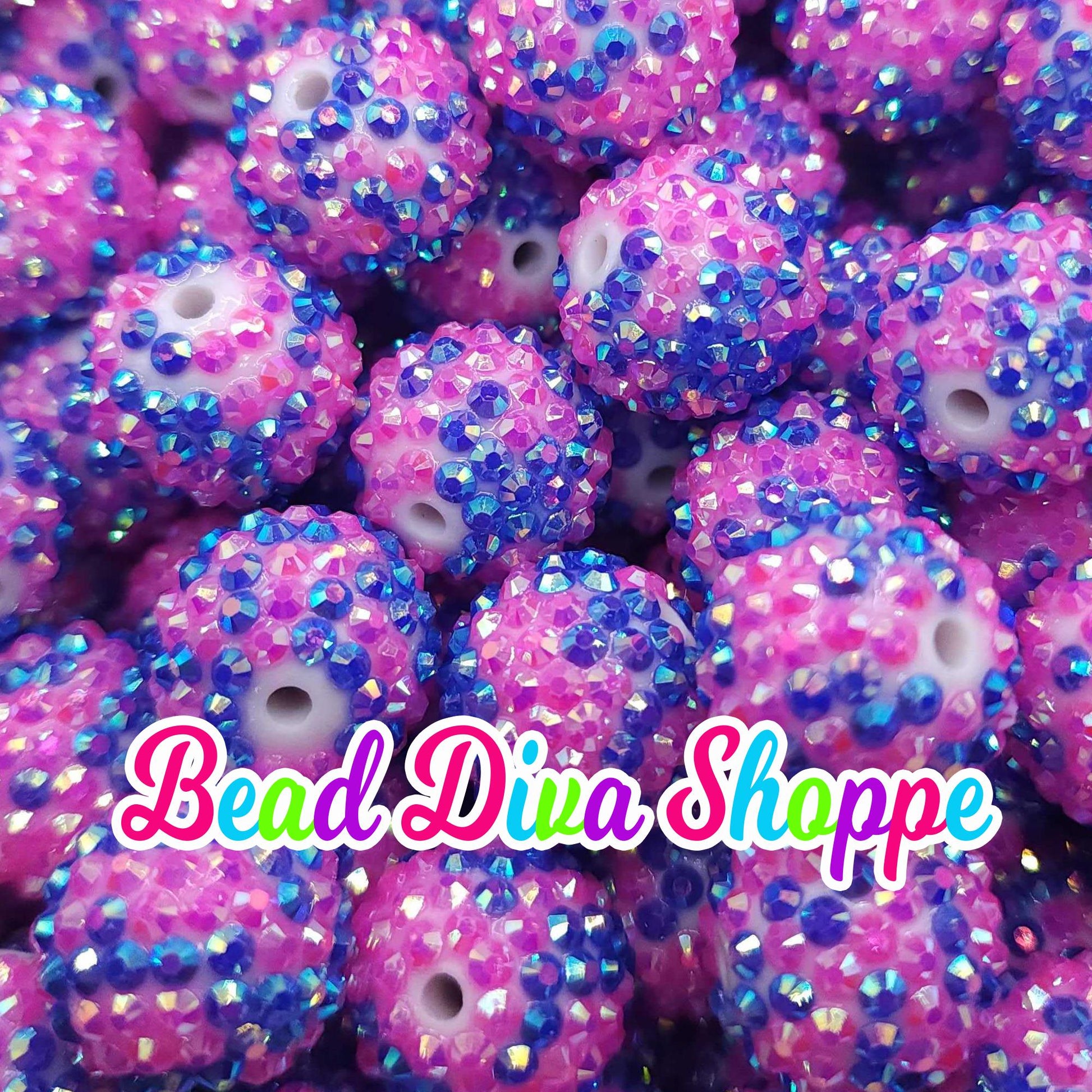 20mm - PINK / BLUE - AB - Rhinestone Beads - Bubblegum - Chunky - Round Acrylic Beads for Diy and Jewelry Making Supplies