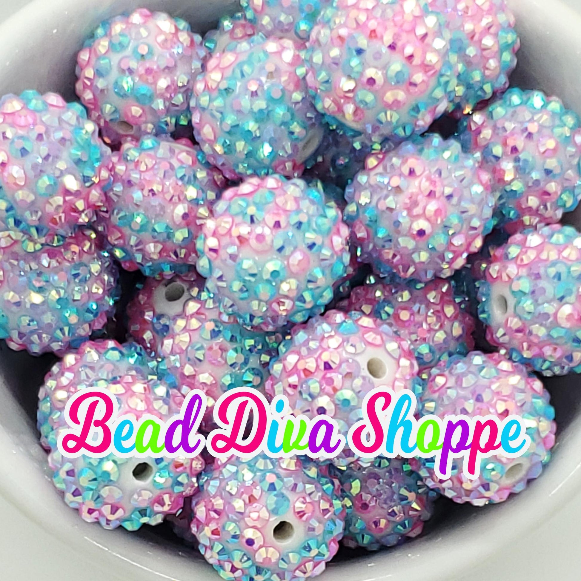 20mm - PINK /PURPLE / BLUE - Ab - Rhinestone Beads- Bubblegum - Chunky - Round Acrylic Beads for Diy and Jewelry Making Supplies