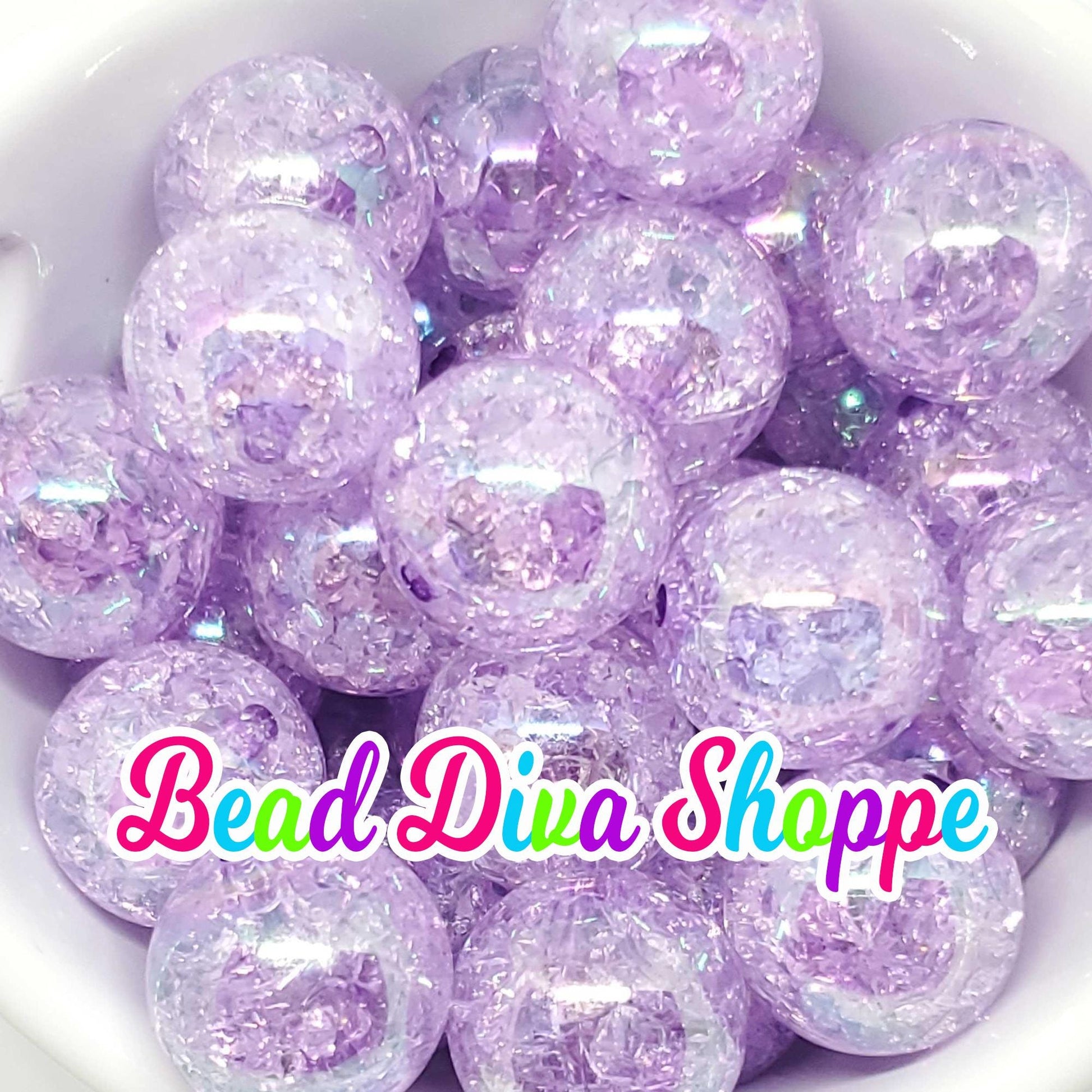20mm - PURPLE - Crackle AB Beads- Bubblegum - Round Acrylic Beads for Diy and Jewelry Making Supplies