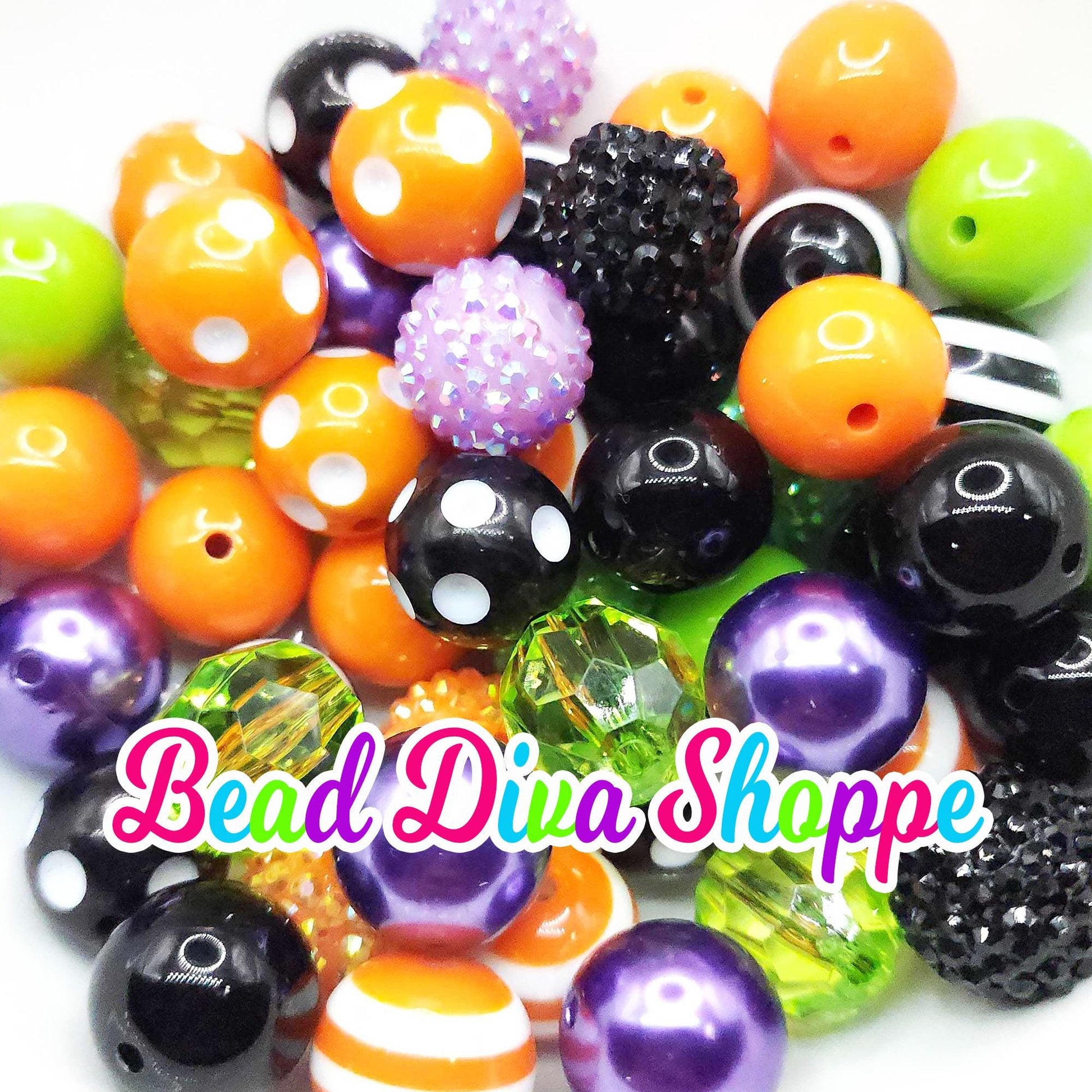 Set of 24 - 20mm - PURPLE / Lime / ORANGE / BLACK - Bead Mix - Bubblegum - Round Acrylic Beads for Diy and Jewelry Making Supplies