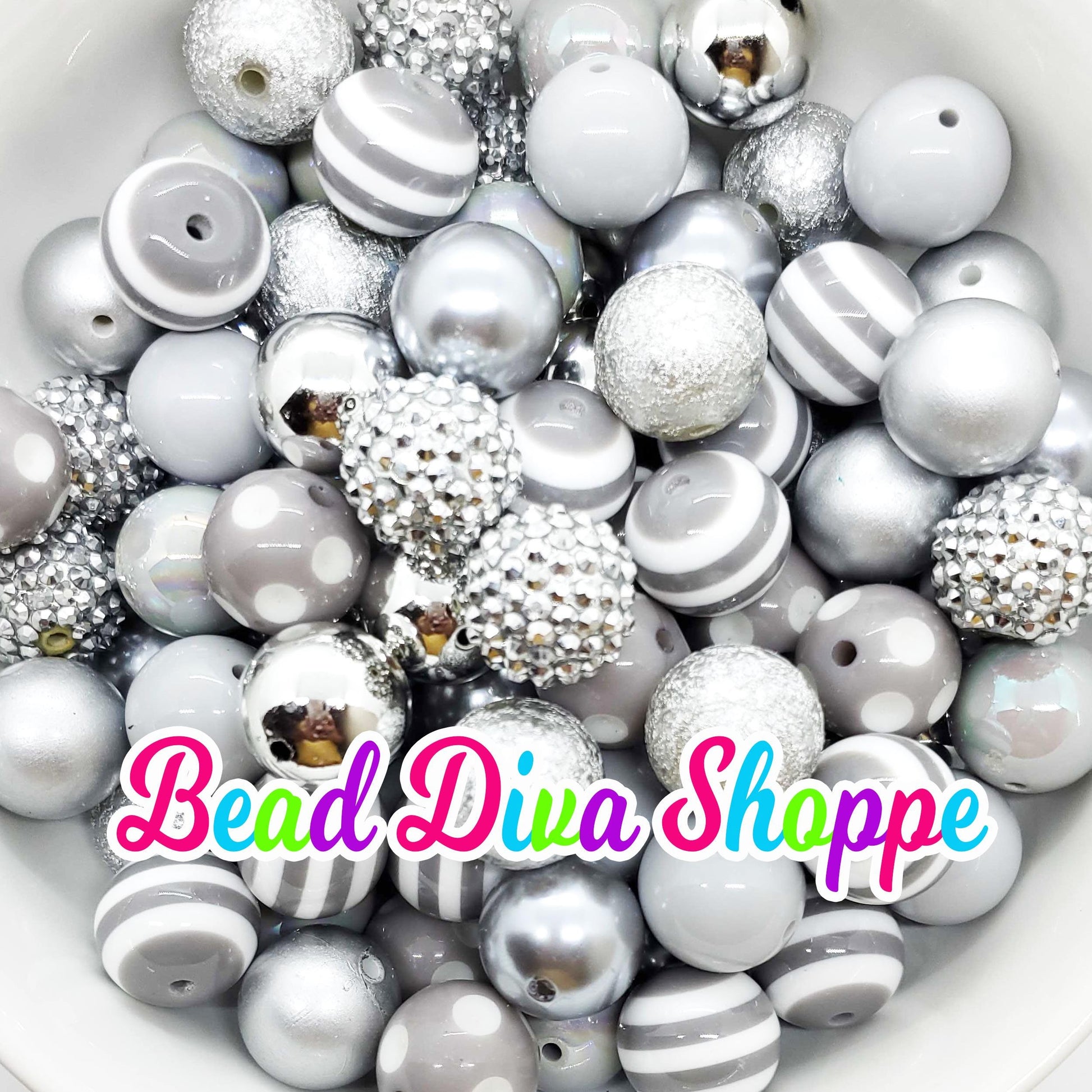 20mm - SILVER Mix - Bead Lot - Bead Mix - Bubblegum - Round Acrylic Beads for DIY and Jewelry Making Supplies