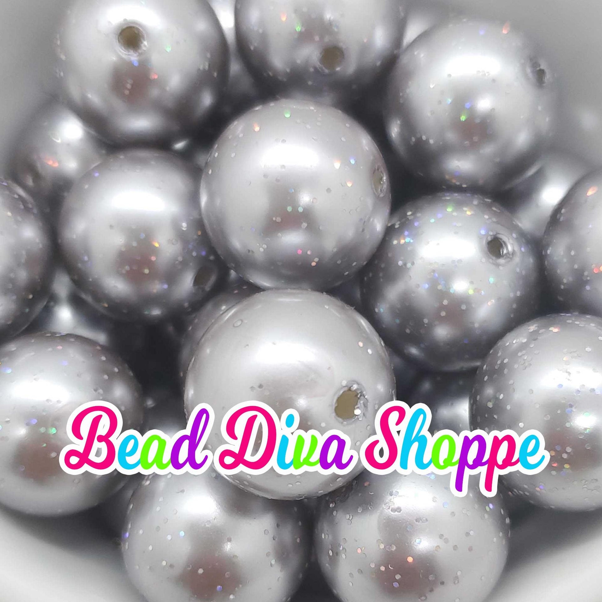 20mm - SILVER PEARL GLITTER - Bubblegum - Round Acrylic Beads for Diy and Jewelry Making Supplies
