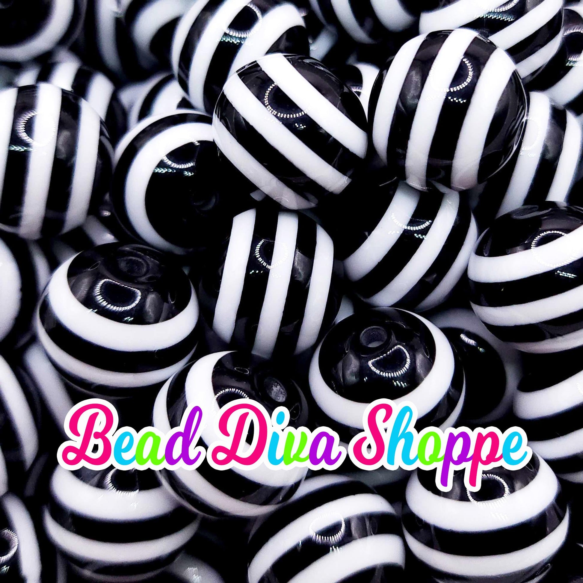 20mm - WHITE / BLACK STRIPES - Bubblegum Beads - Round Acrylic Beads for Diy and Jewelry Making Supplies