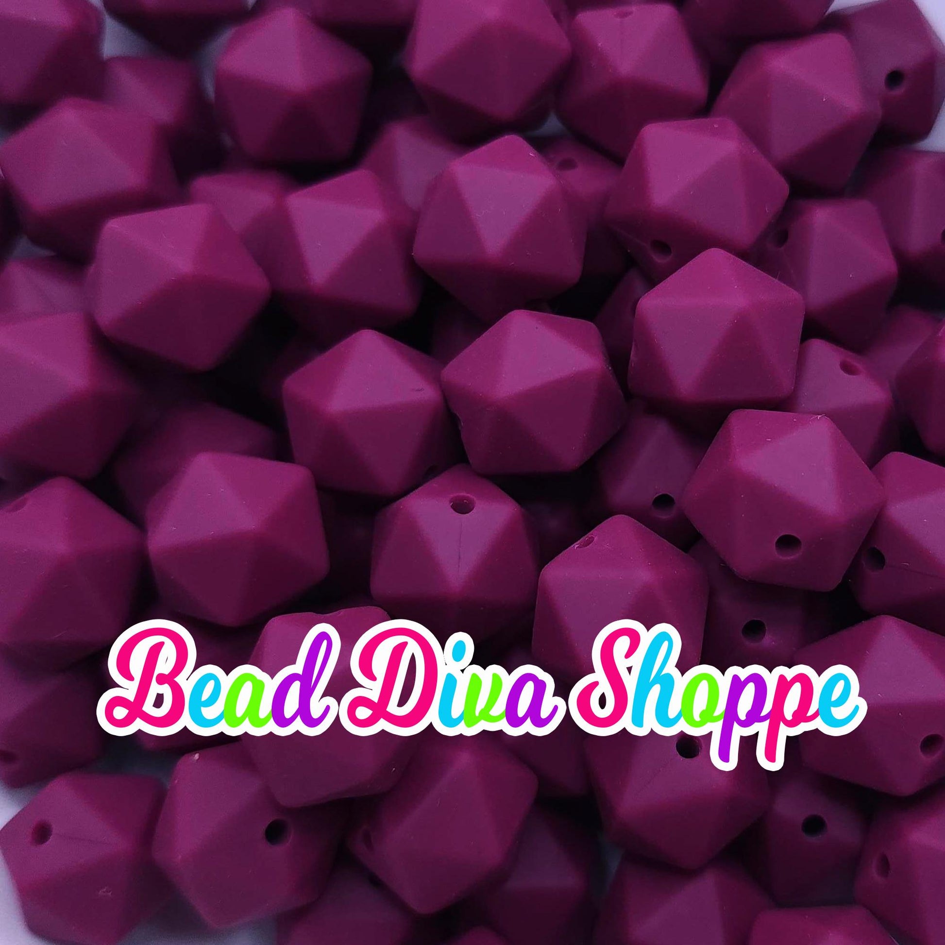 Set of 10 - 14mm - BURGUNDY HEX - Silicone Beads - for Diy and Jewelry Making Supplies