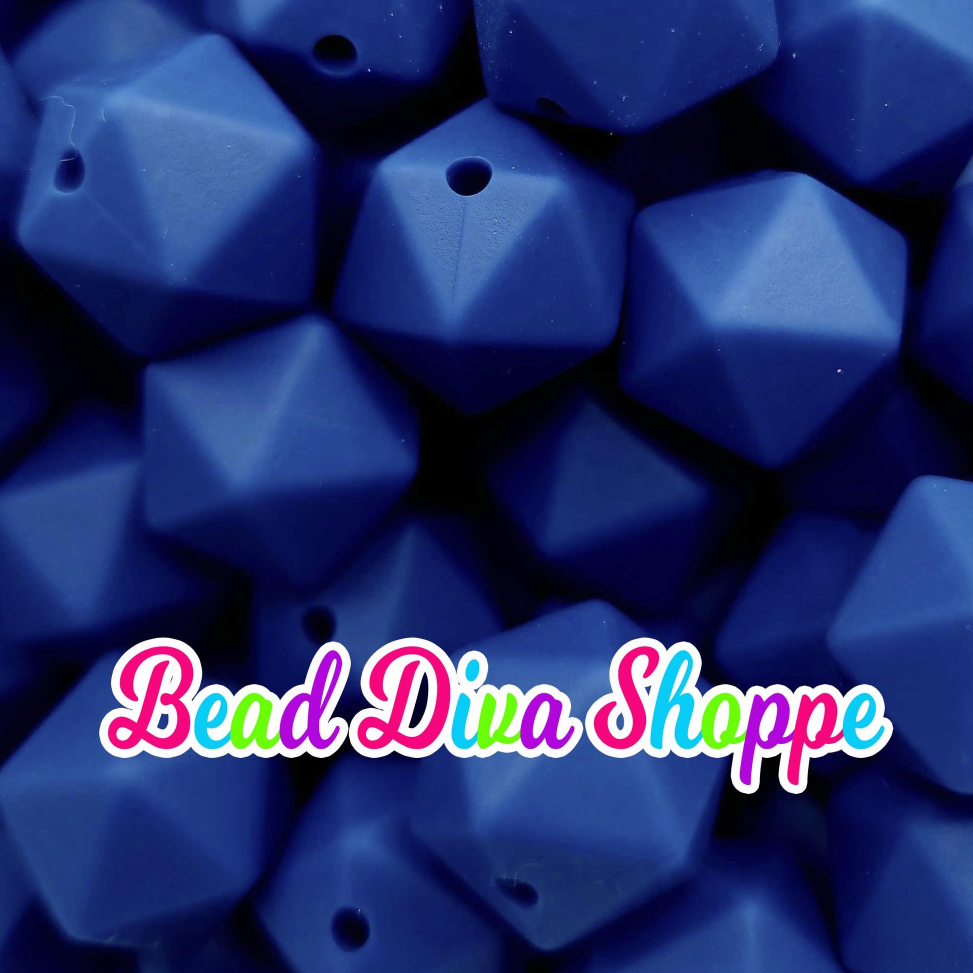 Set of 10 - 14mm - DARK BLUE HEX - Silicone Beads - for Diy and Jewelry Making Supplies