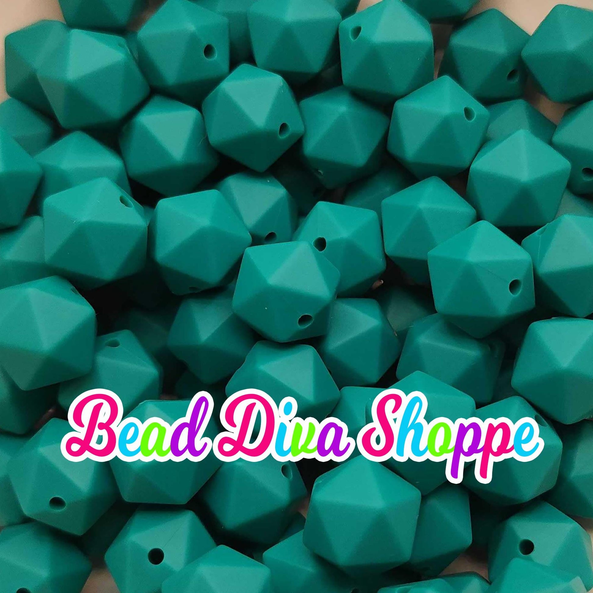 Set of 10 - 14mm - DARK TURQUOISE HEX - Silicone Beads - for Diy and Jewelry Making Supplies