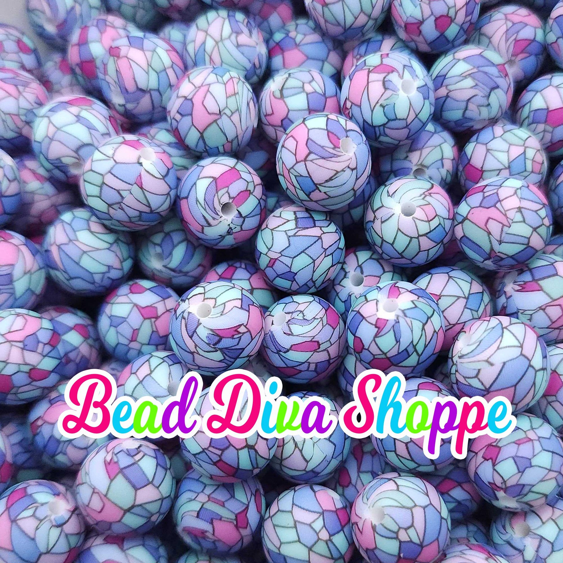 Set of 10 - 15mm - BLUE PURPLE MOSSAIC - Round Silicone Beads for Diy and Jewelry Making Supplies