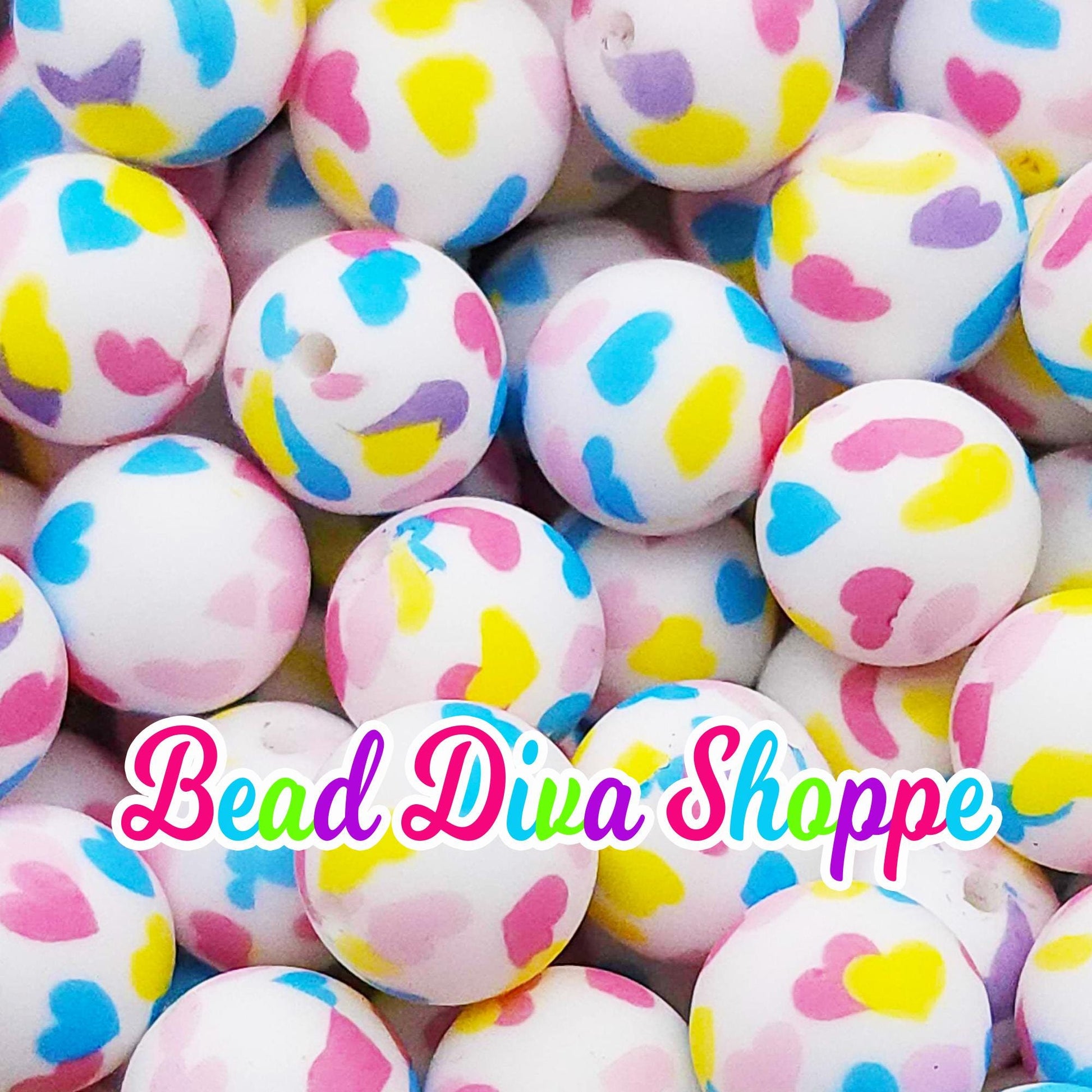 Set of 10 - 15mm - COLORFUL HEARTS - Round Silicone Beads for Diy and Jewelry Making Supplies