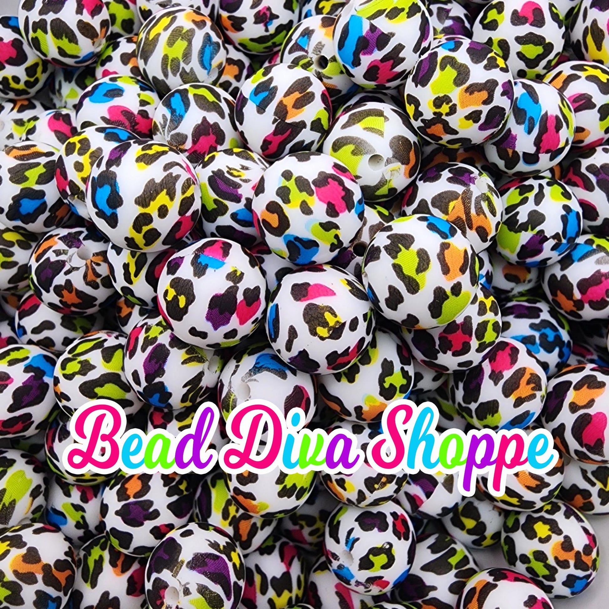 Set of 10 - 15mm - COLORFUL RAINBOW CHEETAH - Round Silicone Beads for Diy and Jewelry Making Supplies
