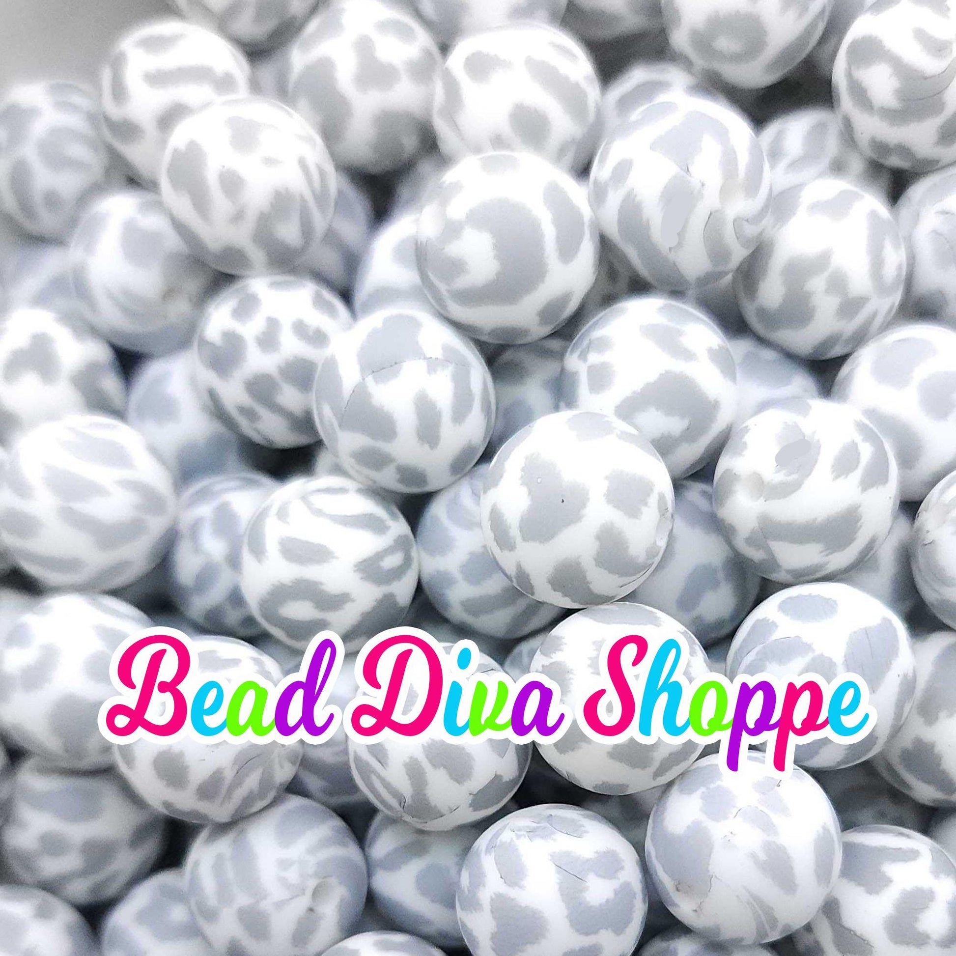 Set of 10 - 15mm - GRAY CHEETAH - Round Silicone Beads for Diy and Jewelry Making Supplies