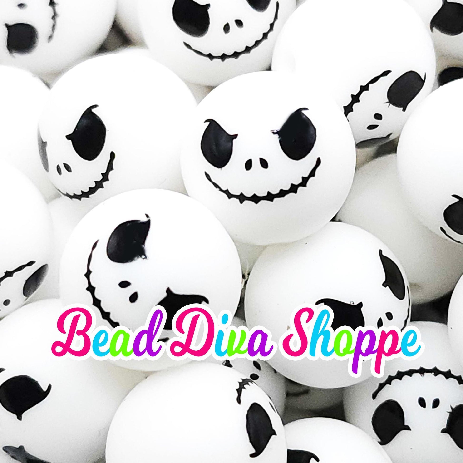 Set of 10 - 15mm - HALLOWEEN FACE - Round Silicone Beads for Diy and Jewelry Making Supplies