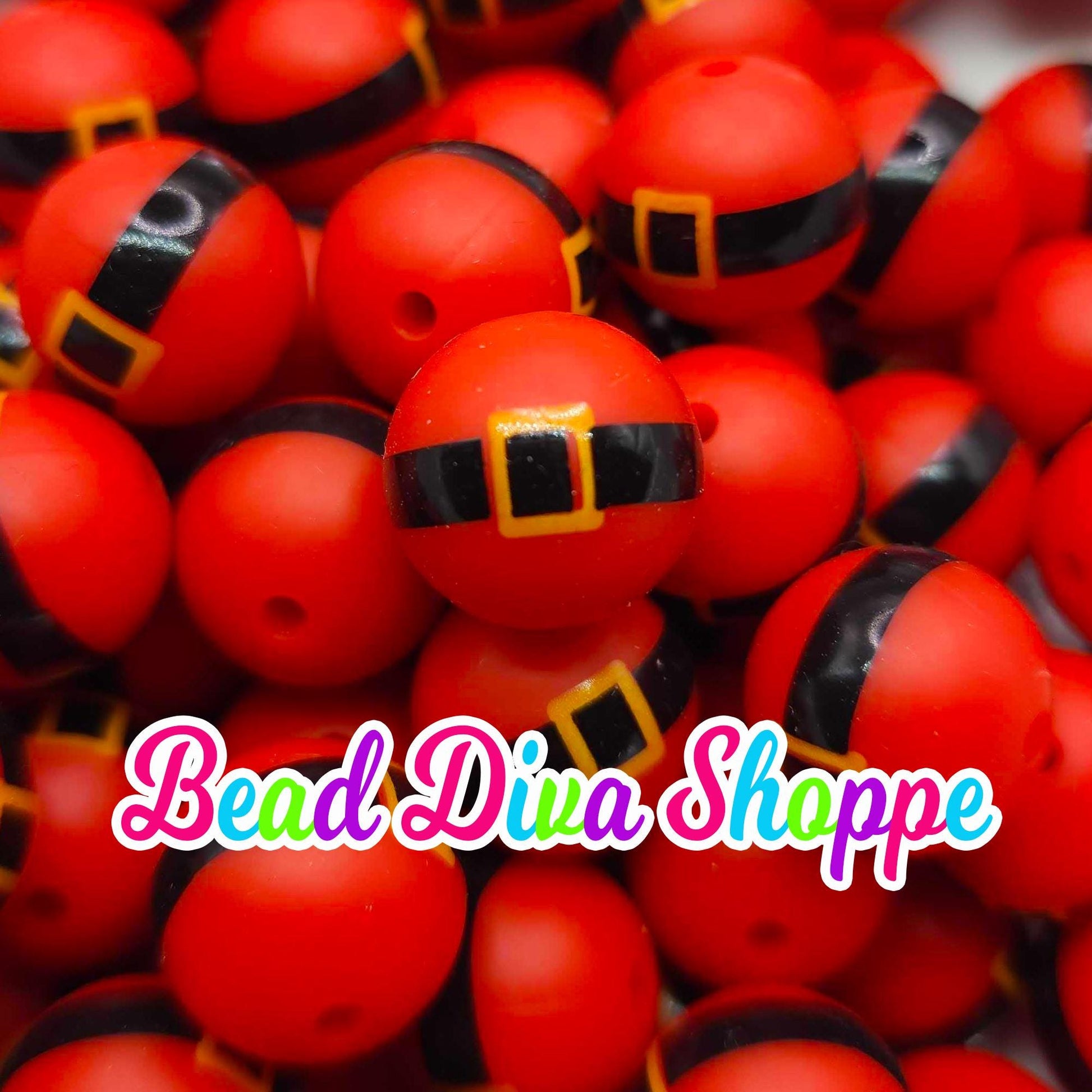 Set of 10 - 15mm - SANTA'S BELT - Round Silicone Beads for Diy and Jewelry Making Supplies - Keychains - Beaded Pens