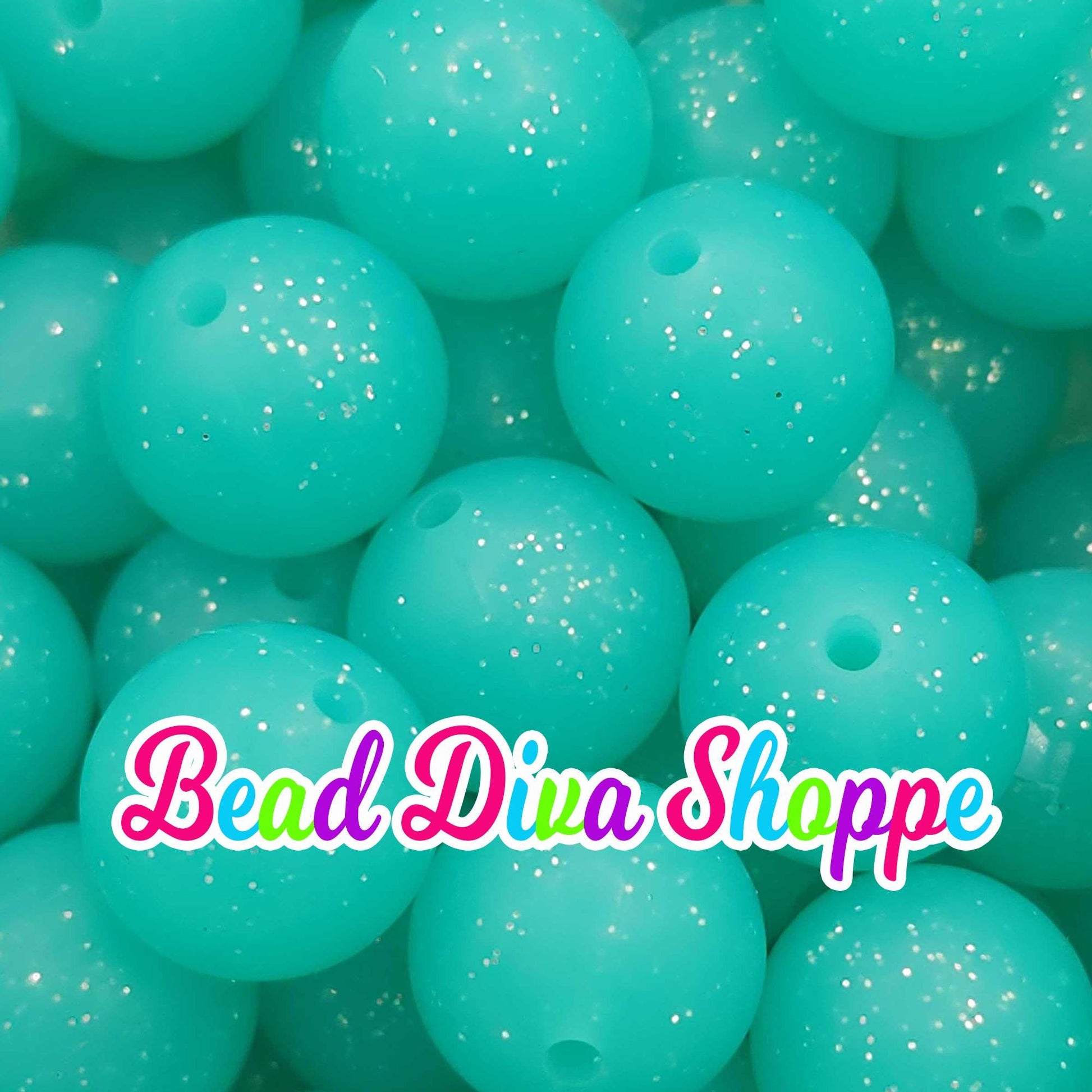 Set of 10 - 15mm - TURQUOISE GLITTER - Solid Silicone Beads - Diy Jewelry Making - Beaded Pens - Keychains - Bracelets