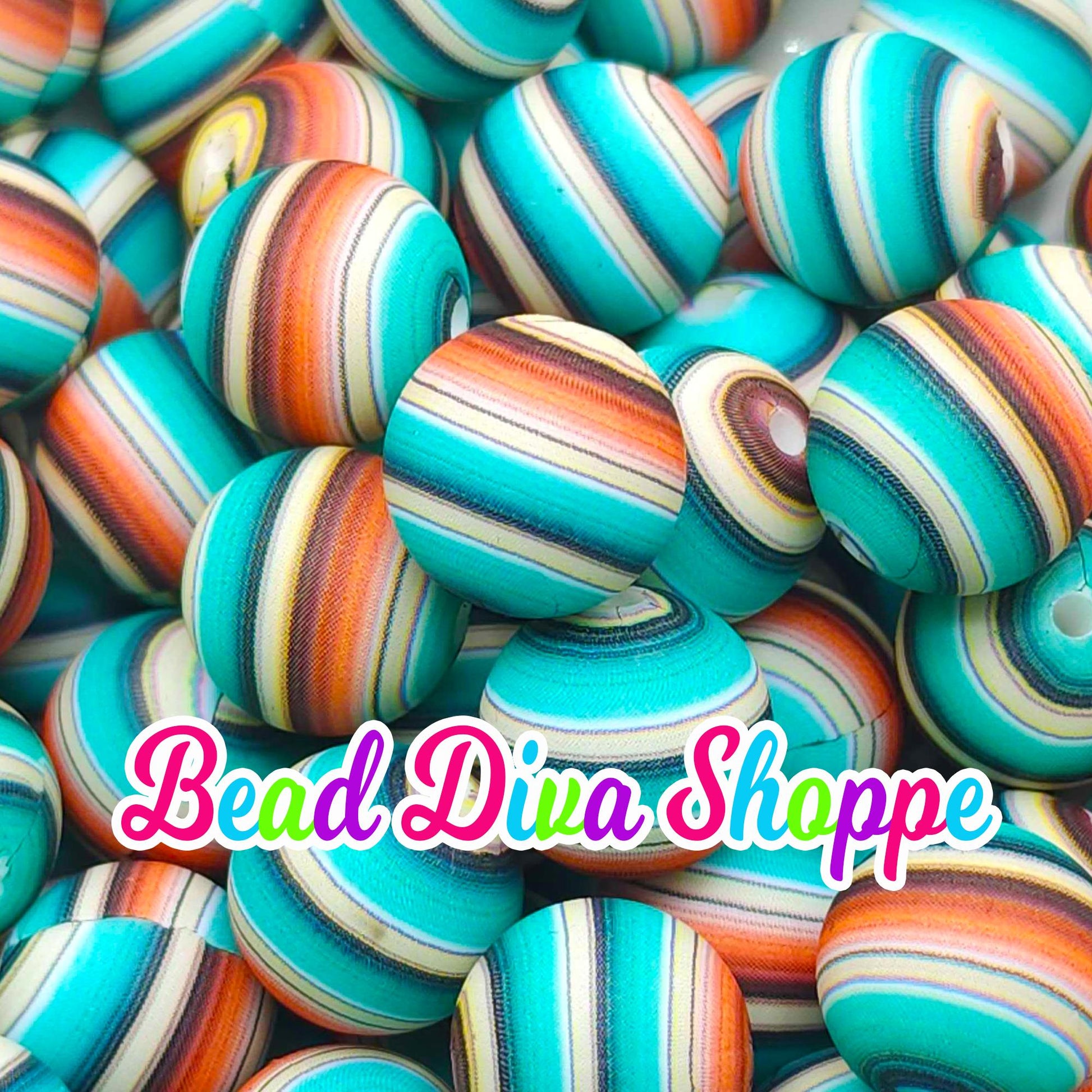 Set of 10 - 15mm - WESTERN STRIPES - Round Silicone Beads for Diy and Jewelry Making Supplies - Keychains - Beaded Pens
