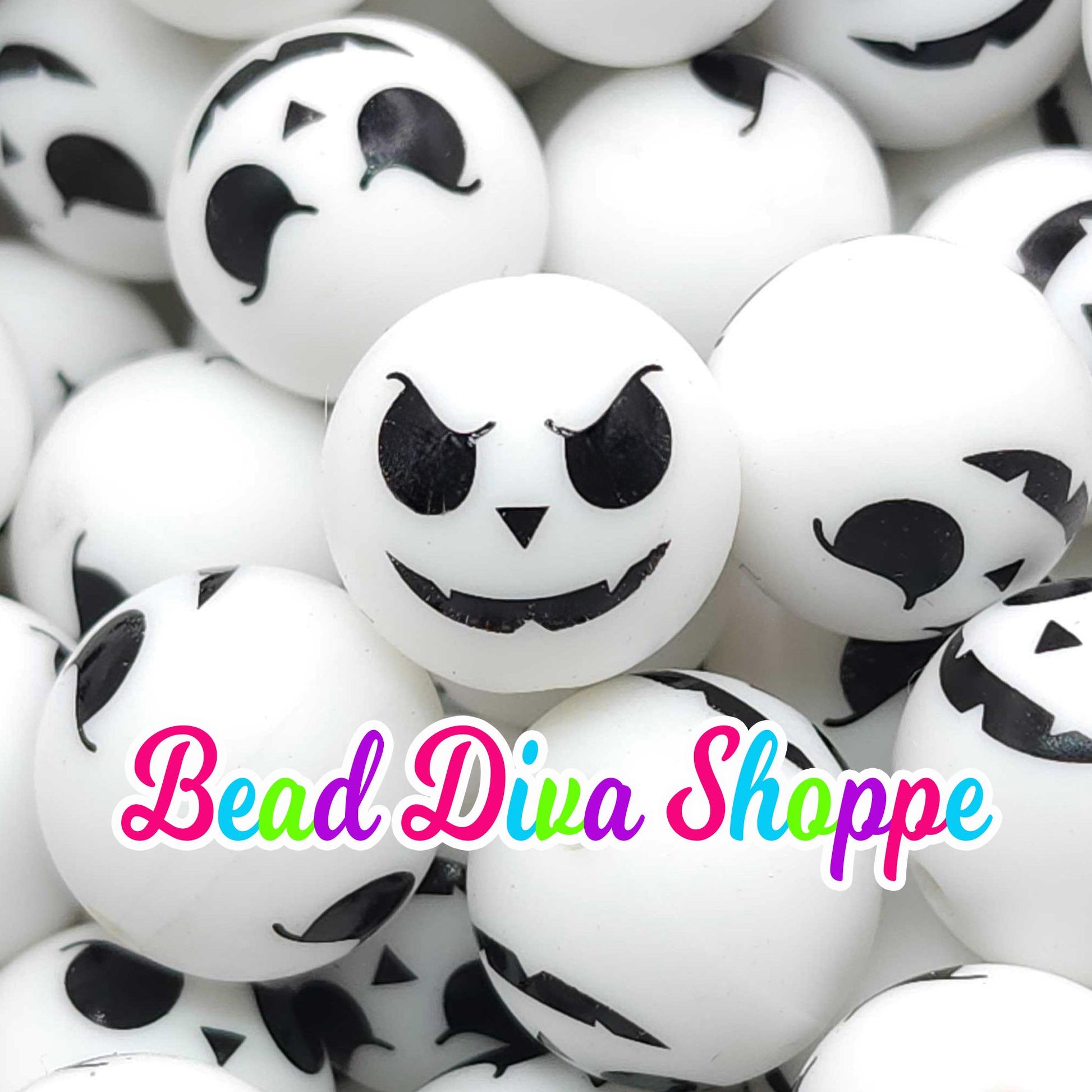 Set of 10 - 15mm - WHITE JACK O LATERN - Round Silicone Beads for Diy and Jewelry Making Supplies - Keychains - Beaded Pens