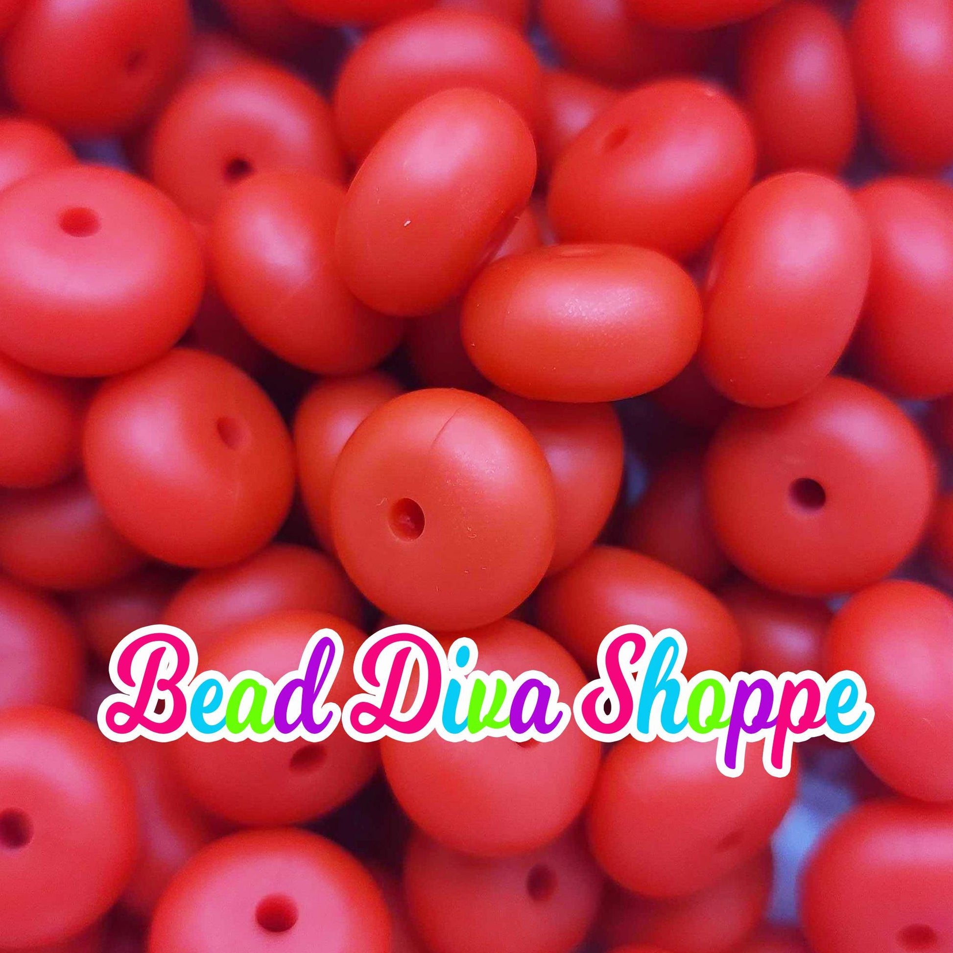Set of 10 - SCARLET RED - 14mm Silicone Abacus Beads - DIY Jewelry Making - Beaded Pens - Keychains - Bracelets