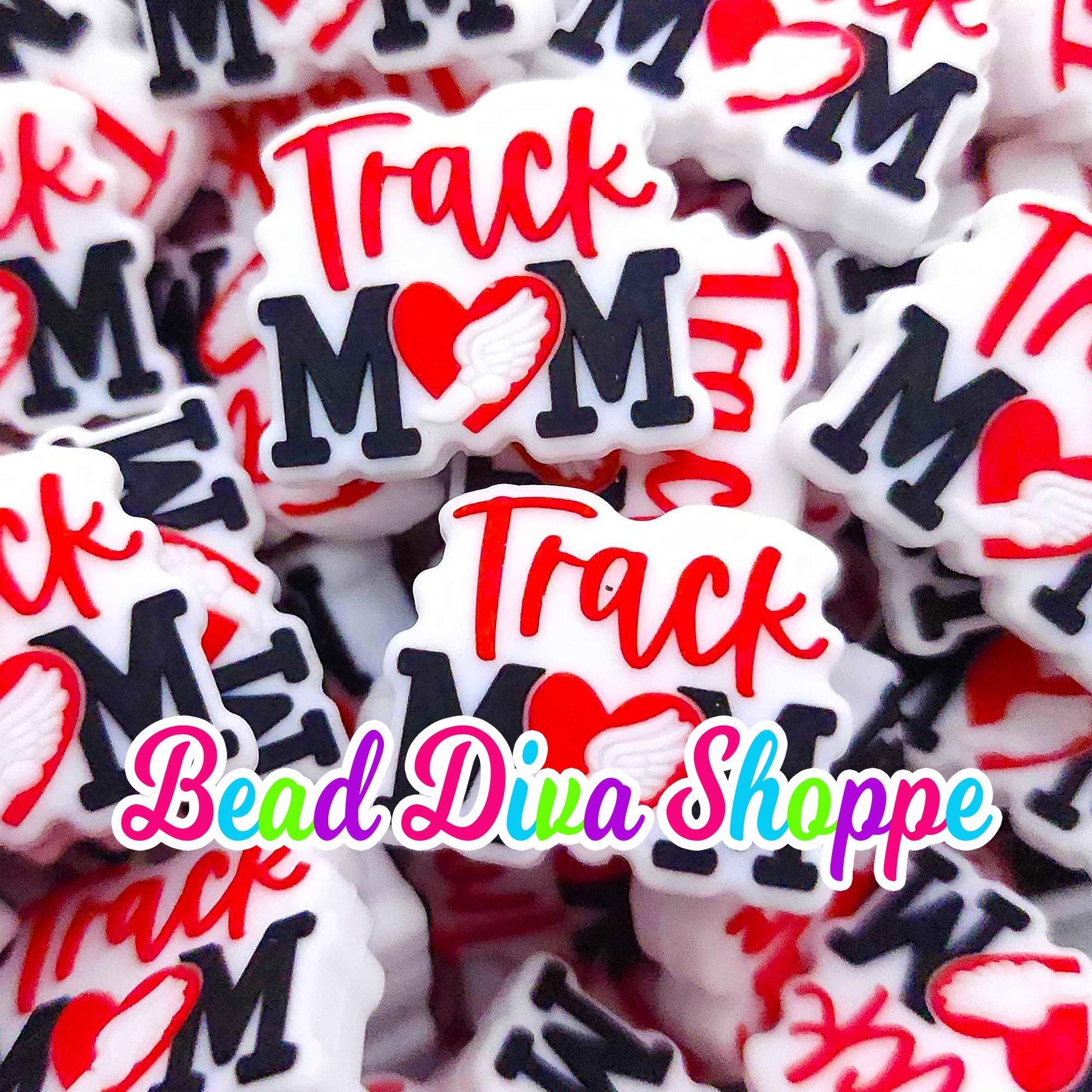 Set of 2 - 22mm x 27mm - TRACK MOM - Focal Beads - DIY Jewelry Making - Beaded Pens - Keychains - Bracelets