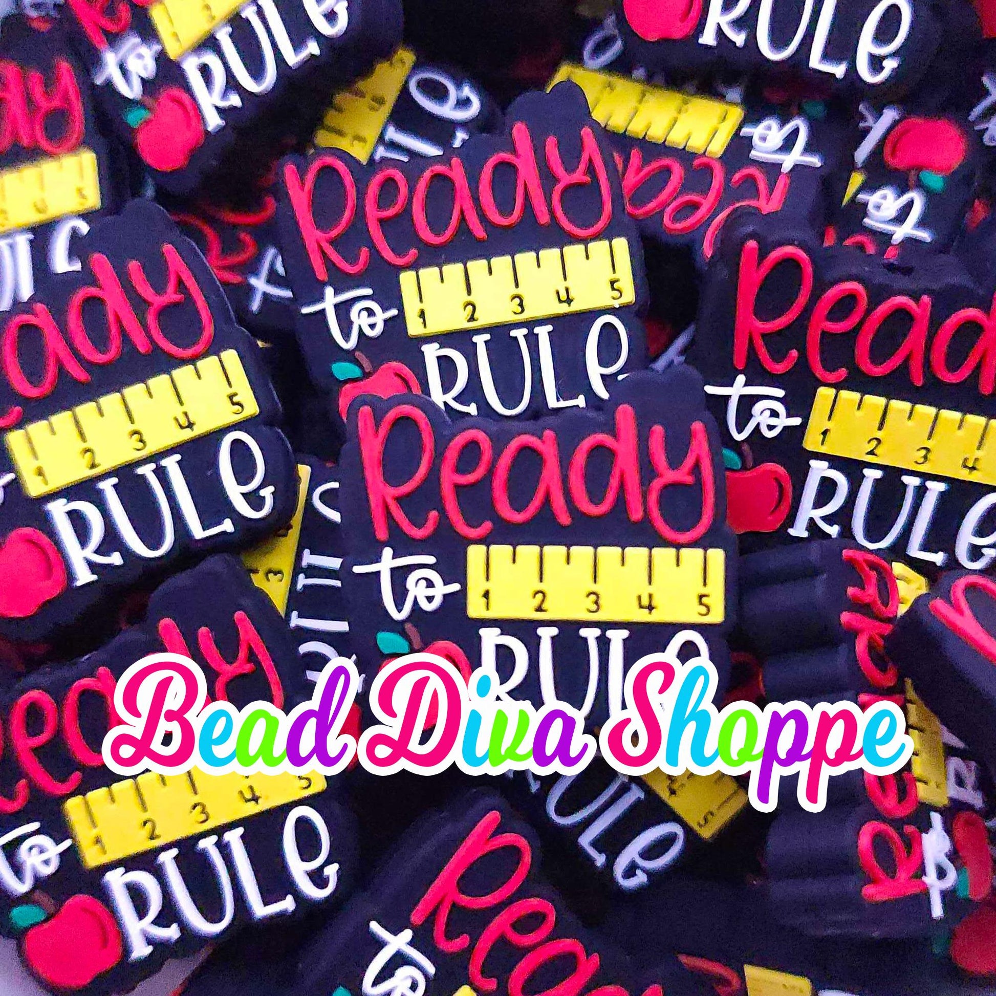 Set of 2 - 25mm x 27mm - READY TO RULE - Teachers - Focal Beads - Diy Jewelry Making - Beaded Pens - Keychains - Bracelets