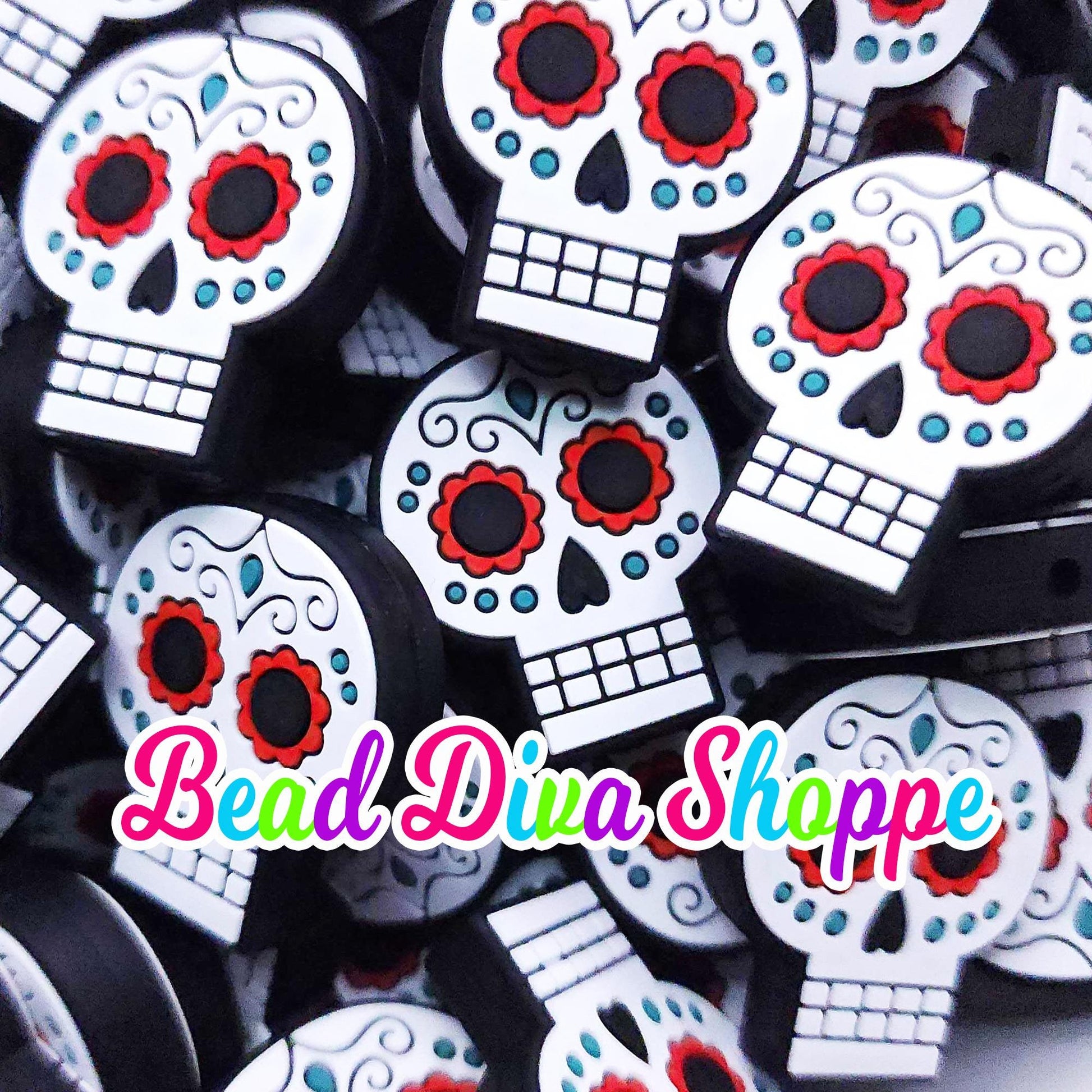 Set of 2 - 25mm X 30mm - SUGAR SKULL - Focal Beads - Diy Jewelry Making - Beaded Pens - Keychains - Bracelets