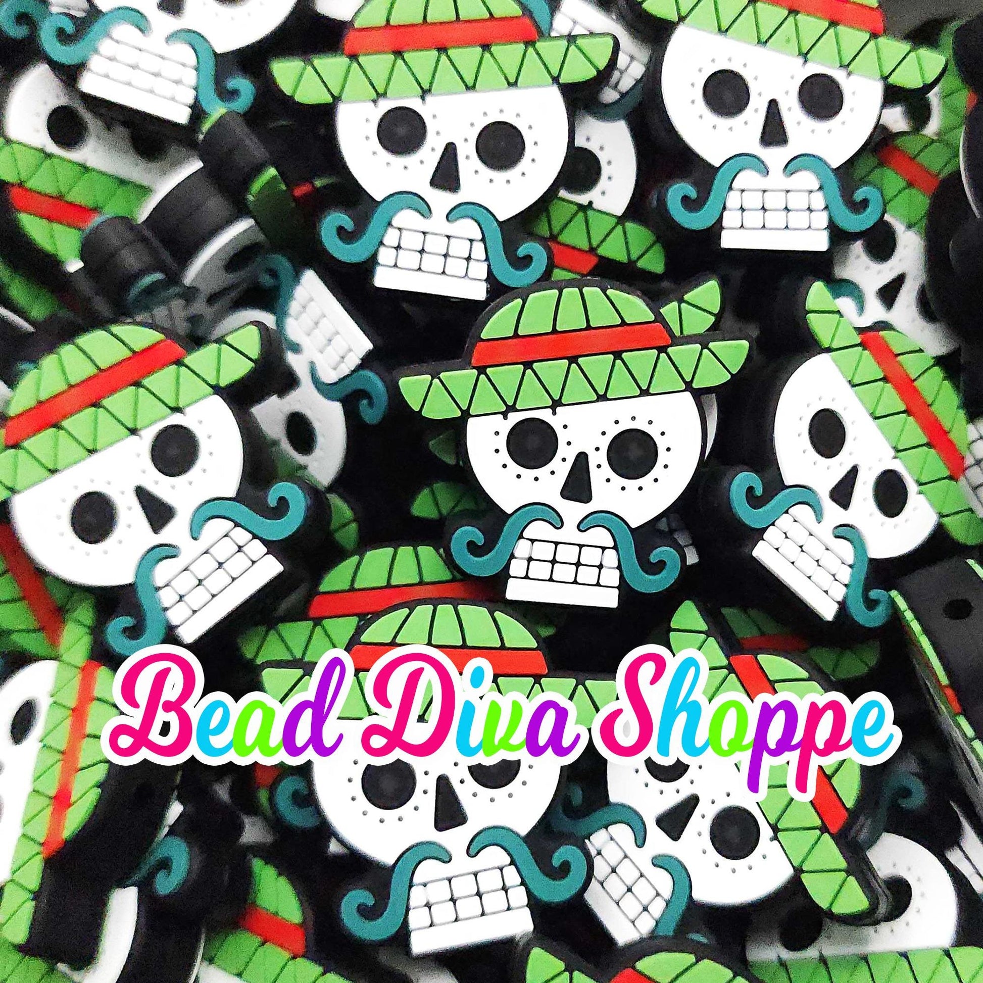 Set of 2 - 30mm x 31mm - SUGAR SKULL W/ MUSTACHE - Focal Beads - Diy Jewelry Making - Beaded Pens - Keychains - Bracelets