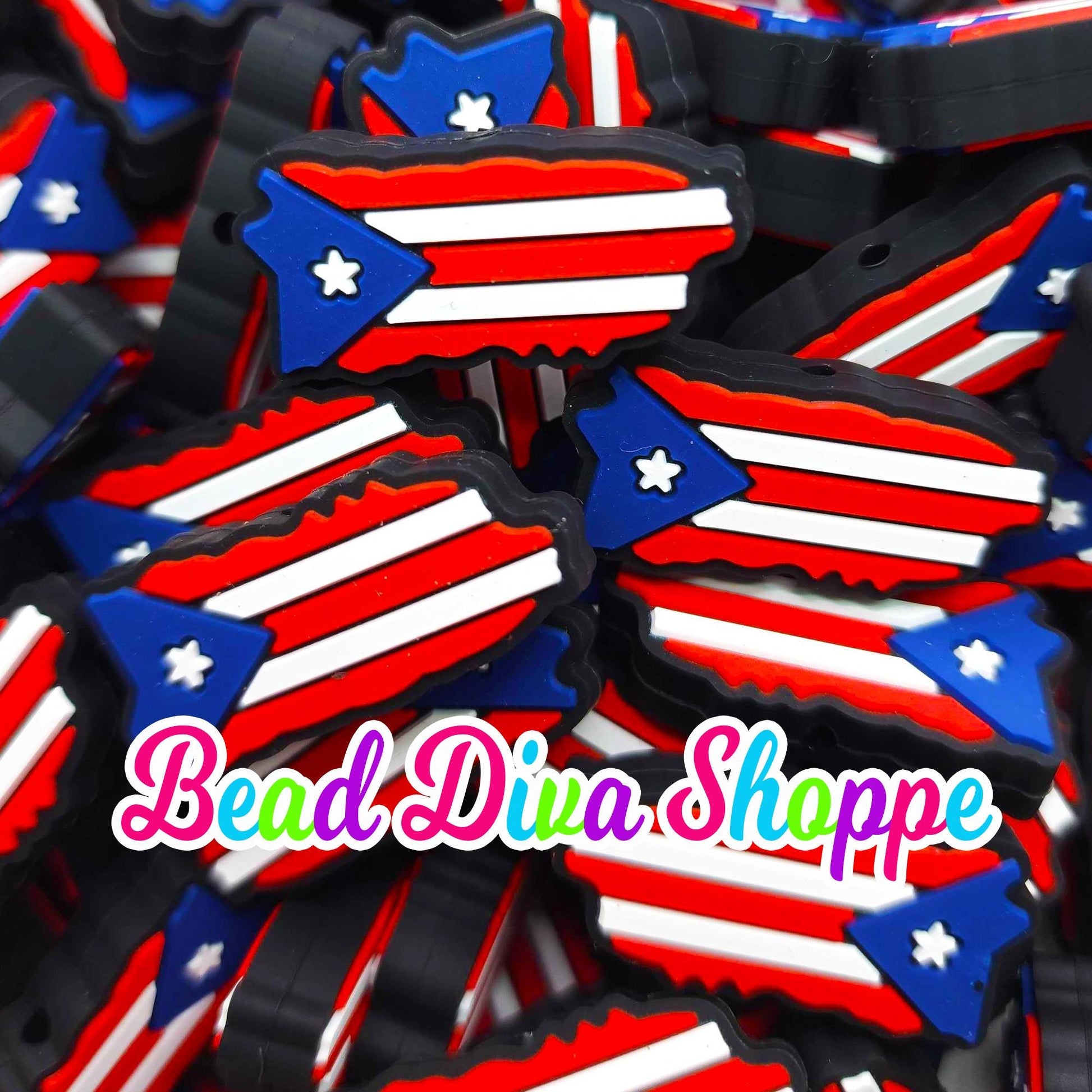 Set of 2 - 33mm X 16mm - PUERTO RICO FLAG - Focal Beads - Diy Jewelry Making - Beaded Pens - Keychains - Bracelets