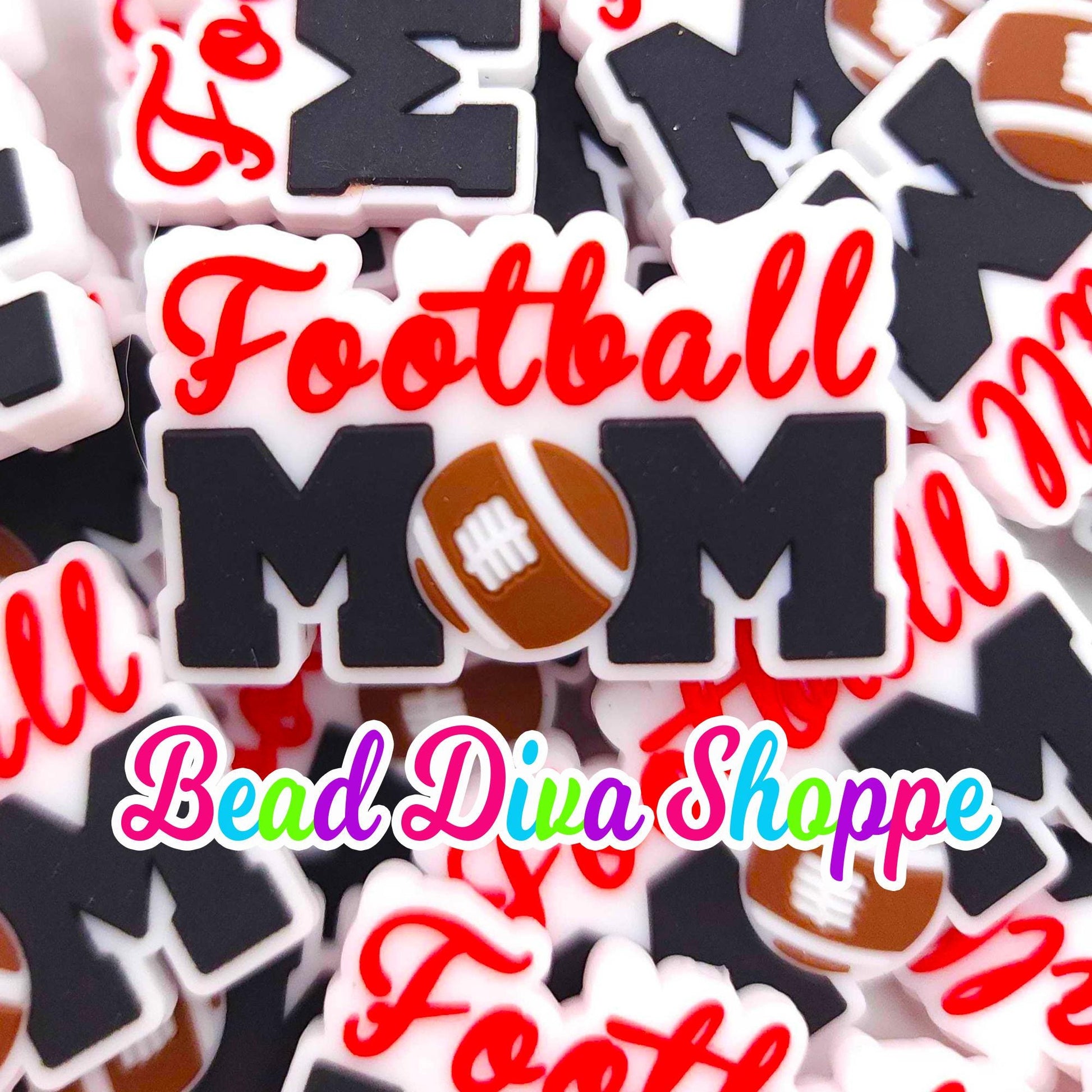 Set of 2 - 40mm X 27mm - FOOTBALL MOM - Focal Beads - DIY Jewelry Making - Beaded Pens - Keychains - Bracelets