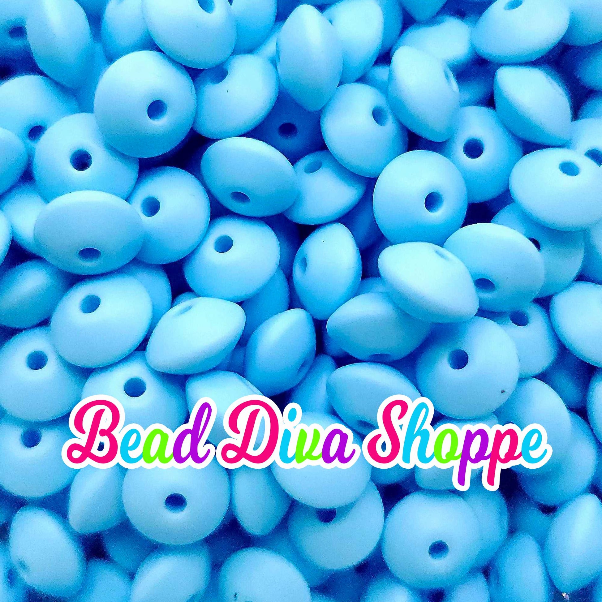 Set of 20 - BABY BLUE - 12mm Silicone Lentil Beads - DIY Jewelry Making - Beaded Pens - Keychains - Bracelets