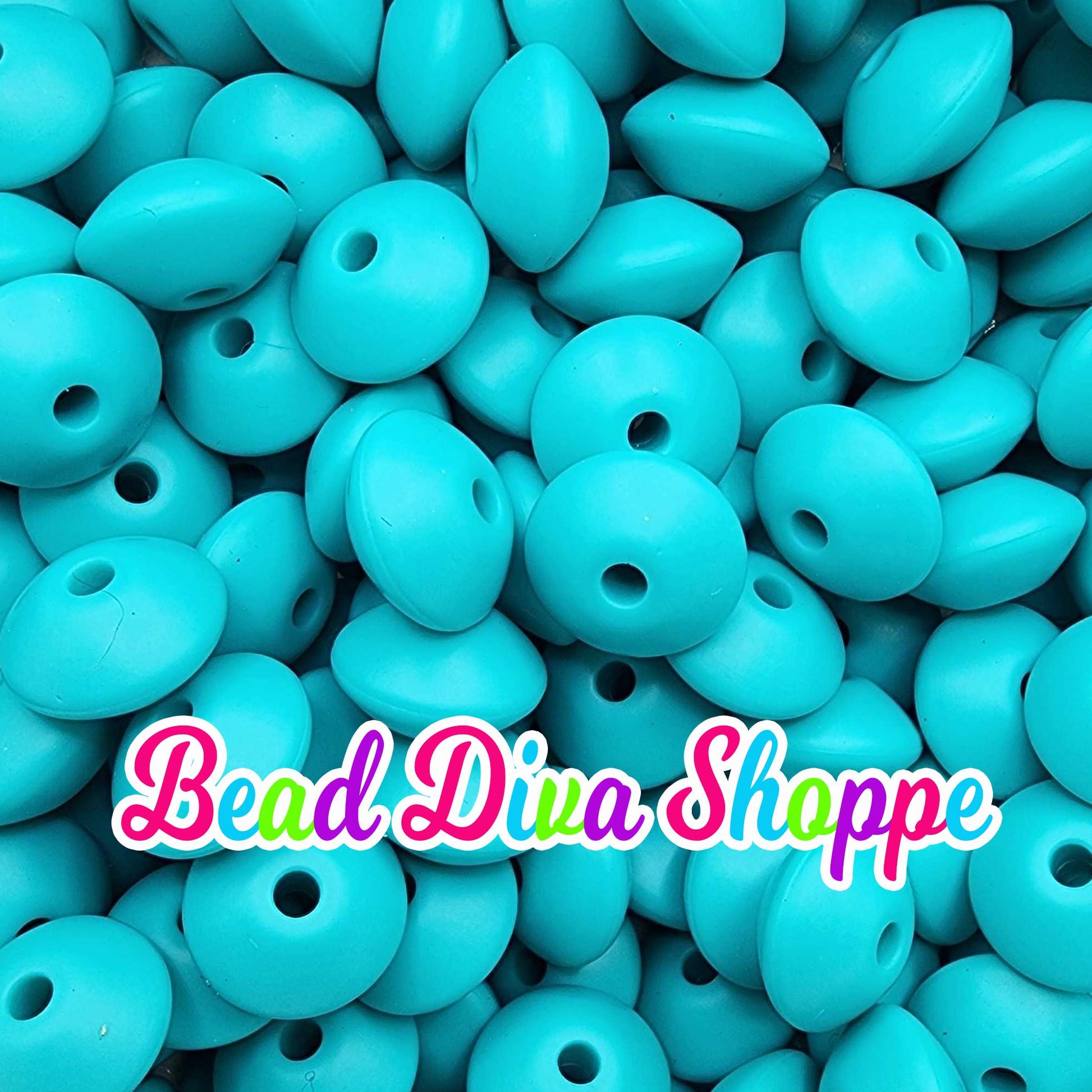 Set of 20 - TURQUOISE - 12mm Silicone Lentil Beads - DIY Jewelry Making - Beaded Pens - Keychains - Bracelets